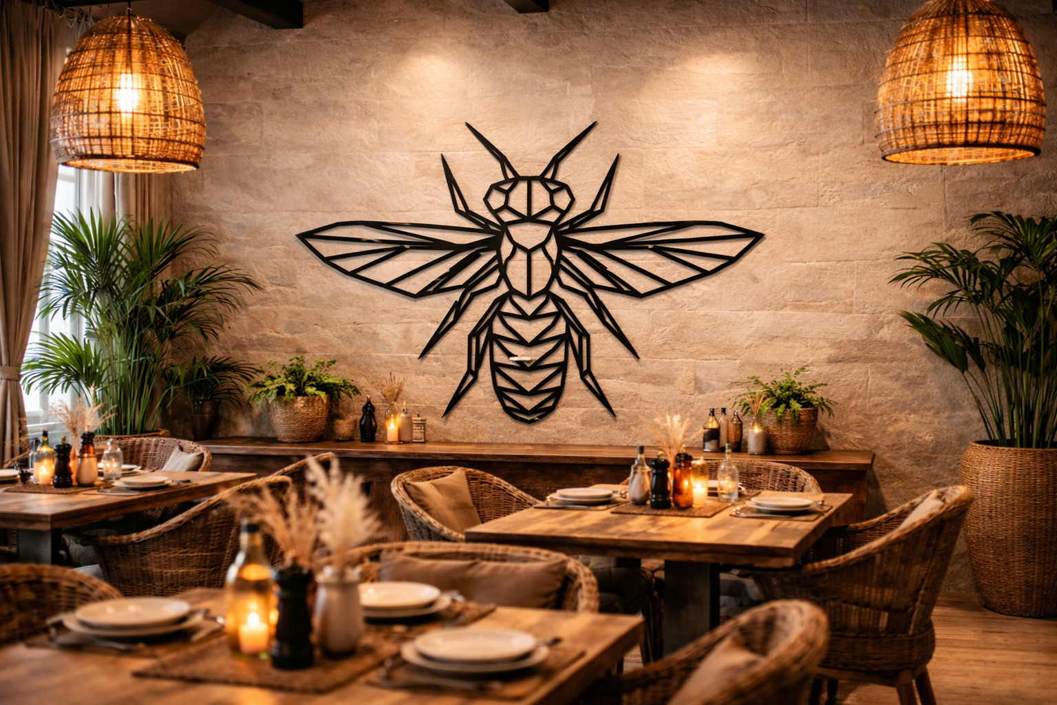Expertly laser-cut from high-quality steel, this piece reimagines the classic honeybee through sharp, clean geometric lines. The intricate, open-framework design allows your wall’s natural color and texture—whether that’s exposed brick, warm plaster, or modern paint—to become part of the artwork. As the natural light in your room changes, the faceted design casts dynamic shadows that give the bee a captivating 3D effect.